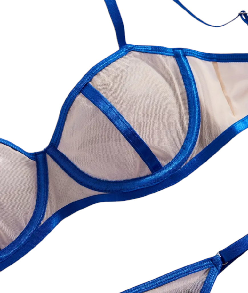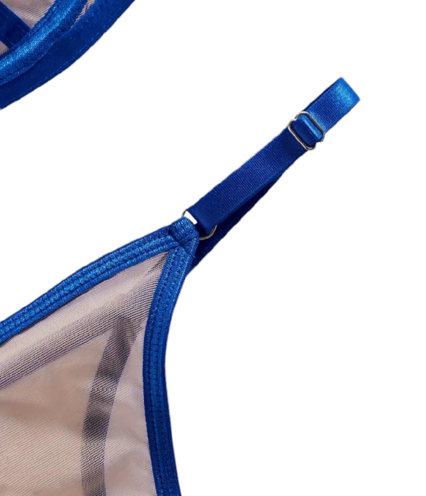 Zmysłowy i uwodzicielski komplet bielizny. Intensywny kolor dodaje wyrafinowania całej kompozycji. Biustonosz soft na fiszbinie + stringi regulowane na bokach mieszczą się w przedziale od S-L. Panie przy miseczce A mogą sięgać po komplet w rozmiarze S.